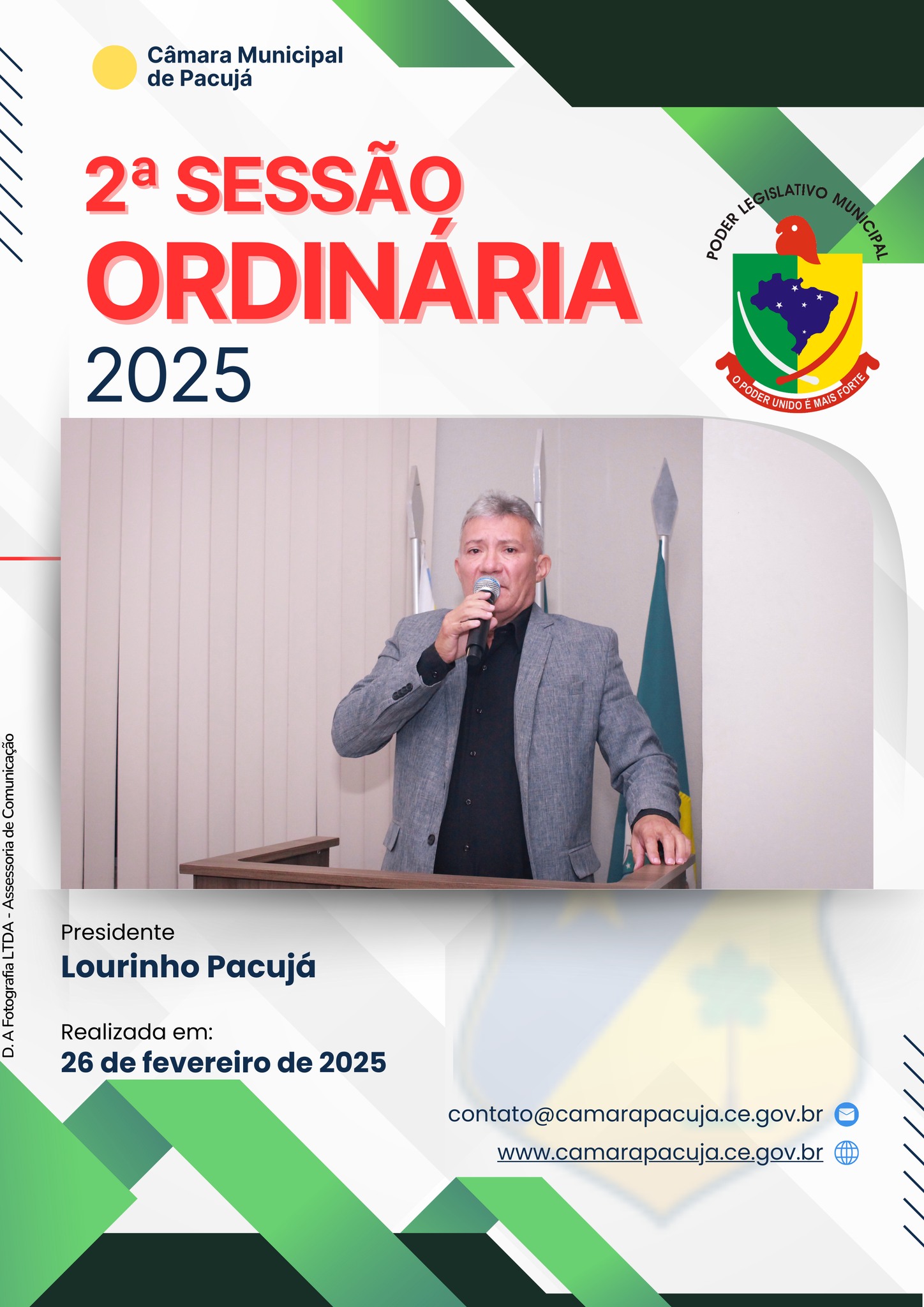 26 de fevereiro de 2025 93 visualizações Compartilhar: Galeria de Imagens (20 fotos) REGISTRO DA 2ª SESSÃO ORDINÁRIA REALIZADA EM: 26 DE FEVEREIRO DE 2025