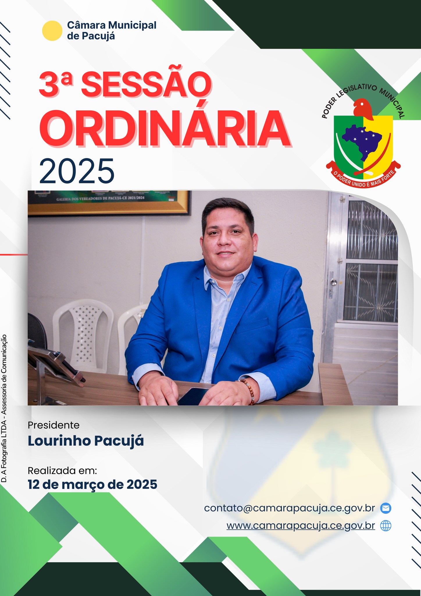 12 de março de 2025 93 visualizações Compartilhar: Galeria de Imagens (9 fotos) REGISTRO DA 3ª SESSÃO ORDINÁRIA REALIZADA EM: 12 DE MARÇO DE 2025