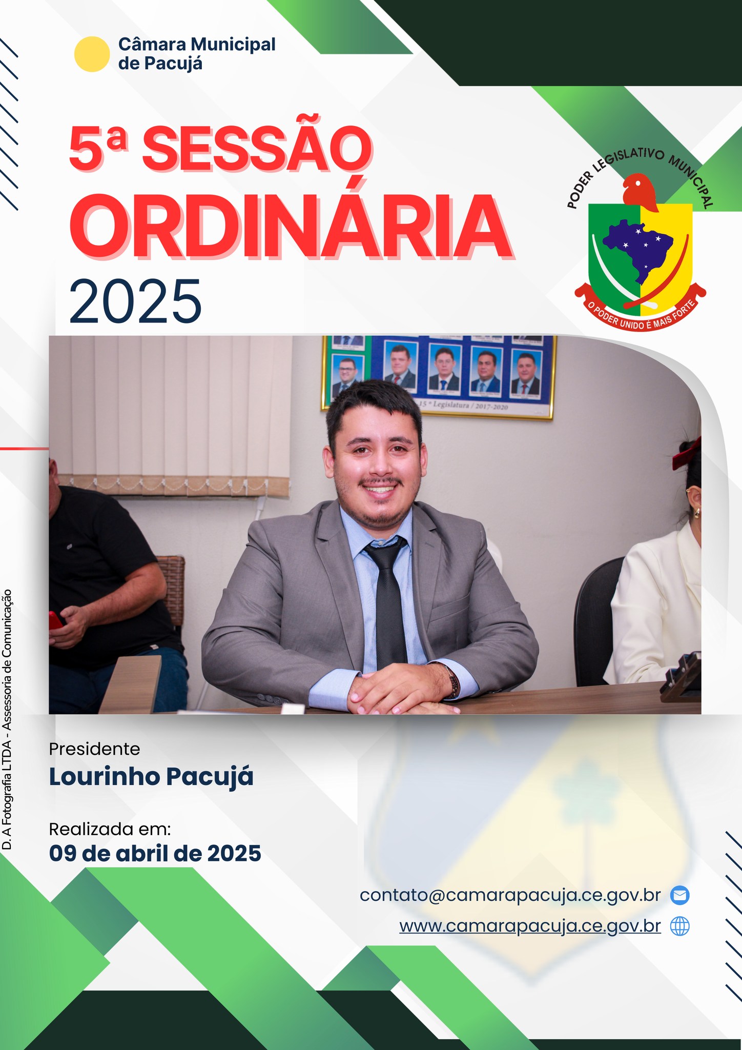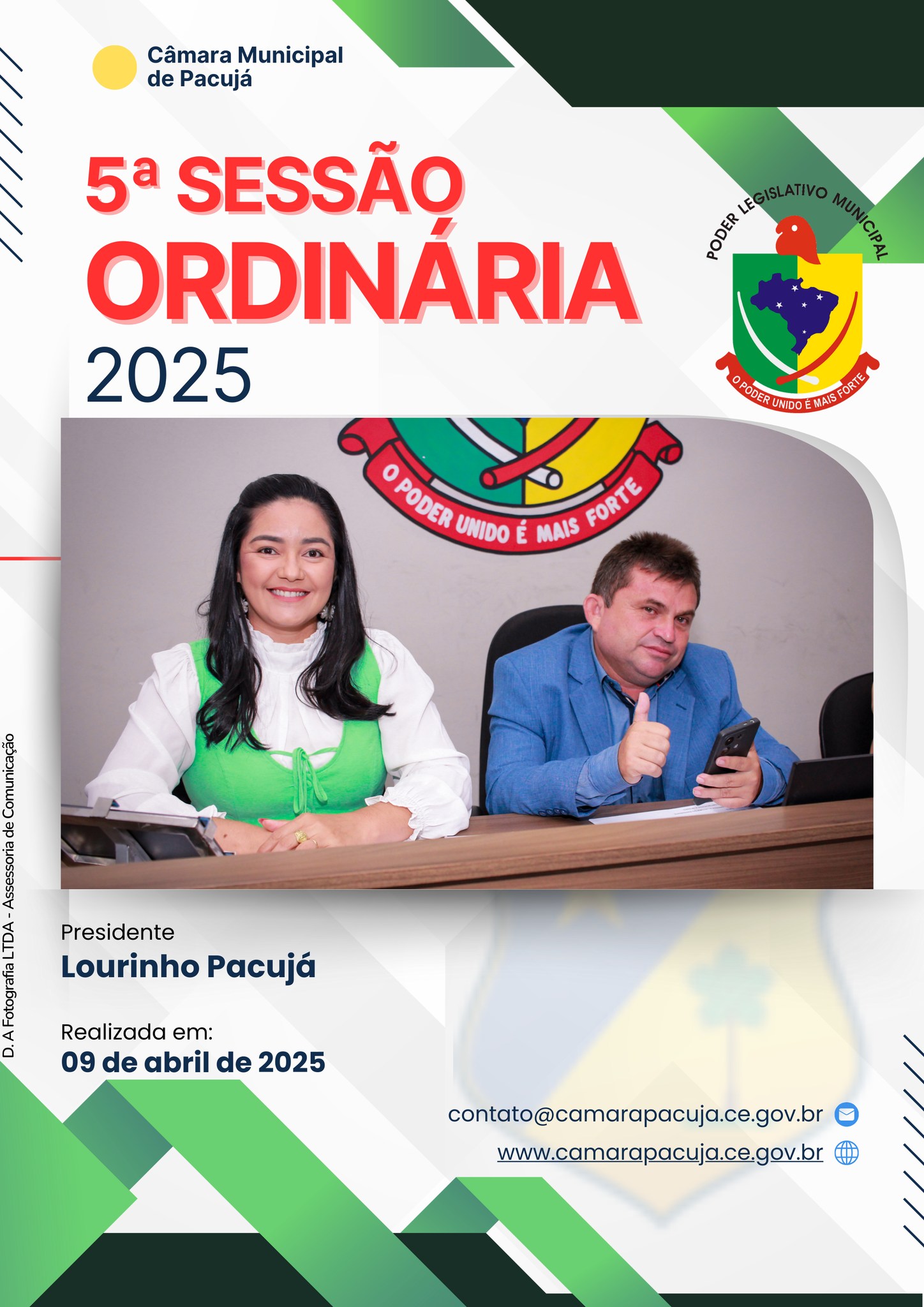 09 de abril de 2025 93 visualizações Compartilhar: Galeria de Imagens (11 fotos) REGISTRO DA 5ª SESSÃO ORDINÁRIA REALIZADA EM: 09 DE ABRIL DE 2025